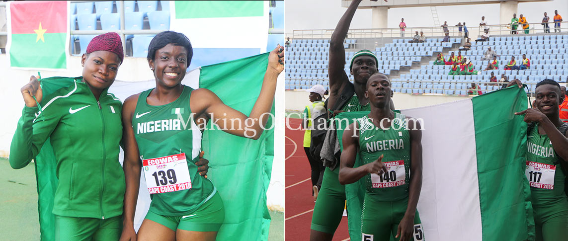 Team Nigeria had a memorable outing on Day 1 of the ECOWAS Under 20 Athletics Championships taking place in Cape Coast Ghana, winning an avalanche of eight GOLD medals in a dominant display against their West African counterparts.