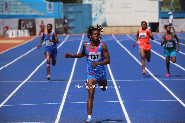 Poised for greatness, she participated, albeit twice, in 2023. Her first appearance was at the African U-20 Championships in Zambia, where she emerged as the standout performer by securing Gold in both the women’s 100m and 200m events. Notably, she clocked impressive times of 11.43s and 23.28s, marking an exceptional start to her season. The sole other instance she graced the track was at the National Championships in Benin, adorned in a complete LSU kit. Unfortunately, her season took an unexpected turn as she suffered an injury, compelling her to be stretchered off the track.